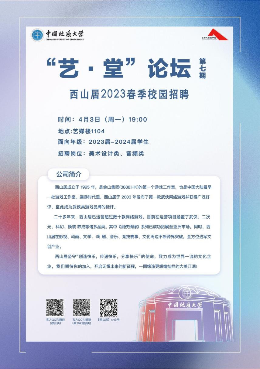 “艺·堂”论坛 | 第七期西山居2023春季招聘