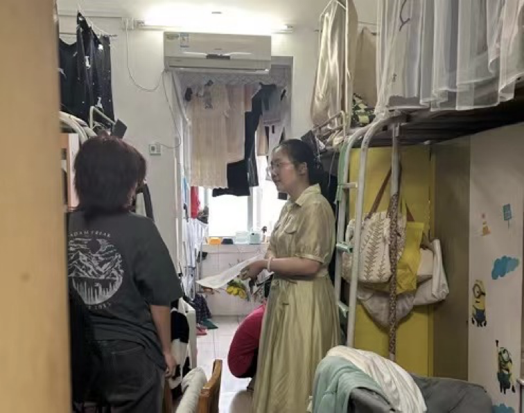 在走访寝室过程中,辅导员老师对各个寝室的安全用电情况、卫生状况进行了相关检查,并与同学们进行亲切交谈,及时了解同学们未来的假期生活规划,解答了近期学生所关注的问题。同时叮嘱寝室长要起好带头作用,创建团结、友爱、健康的宿舍环境,坚决杜绝晚归、夜不归寝等违规违纪行为。