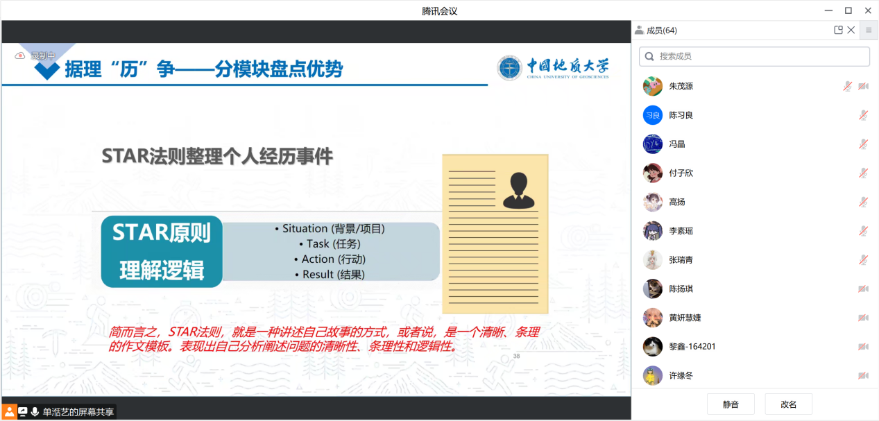 为全面贯彻落实党中央、国务院关于高校毕业生就业工作决策部署及湖北省关于加强大学毕业生就业指导的精神,米乐mile官方网站紧紧围绕立德树人根本任务,帮助学生树立职业发展目标,促进2024届毕业生更加充分更高质量就业,积极实施毕业生就业促进行动。6月16日下午14:30,米乐mile官方网站2024届就业动员会暨就业指导课在南望山校区教三楼207教室举行。本次就业指导课以线上和线下的方式相结合,课程内容分为就业形势与政策、简历制作与投递技巧两个部分。