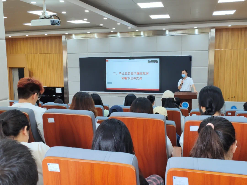 为做好2023届毕业生党员教育及组织关系管理工作,米乐mile官方网站党建办组织开展毕业生廉洁教育,上好毕业生党员离校前“最后一堂党课”。2023年6月1日15:00,米乐mile官方网站于1104召开毕业生党员大会。提高毕业生的廉洁从业意识,牢固树立廉荣贪耻的人生理念,扣好人生的“第一粒扣子”。以信仰之光照亮青春之路,激励全体学生坚定信念,积极投身于以中国式现代化全面推进中华民族伟大复兴的火热实践中。