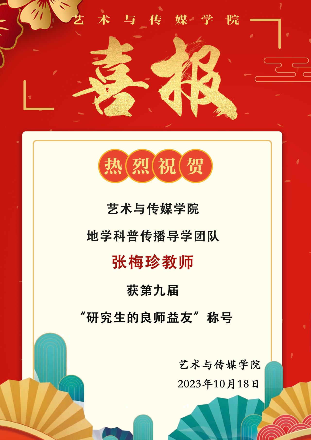 喜报 | 热烈祝贺米乐官网张梅珍教师荣获第九届“研究生的良师益友”称号