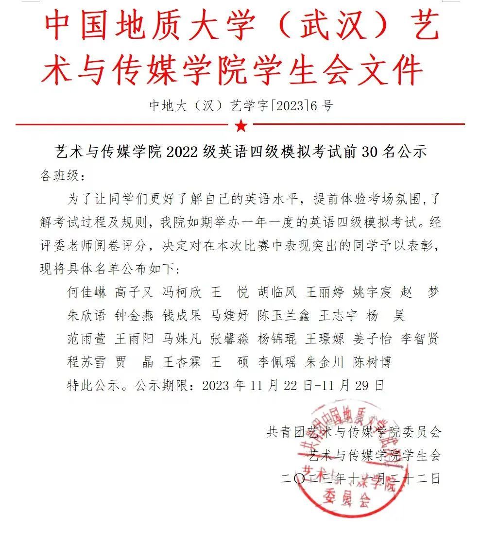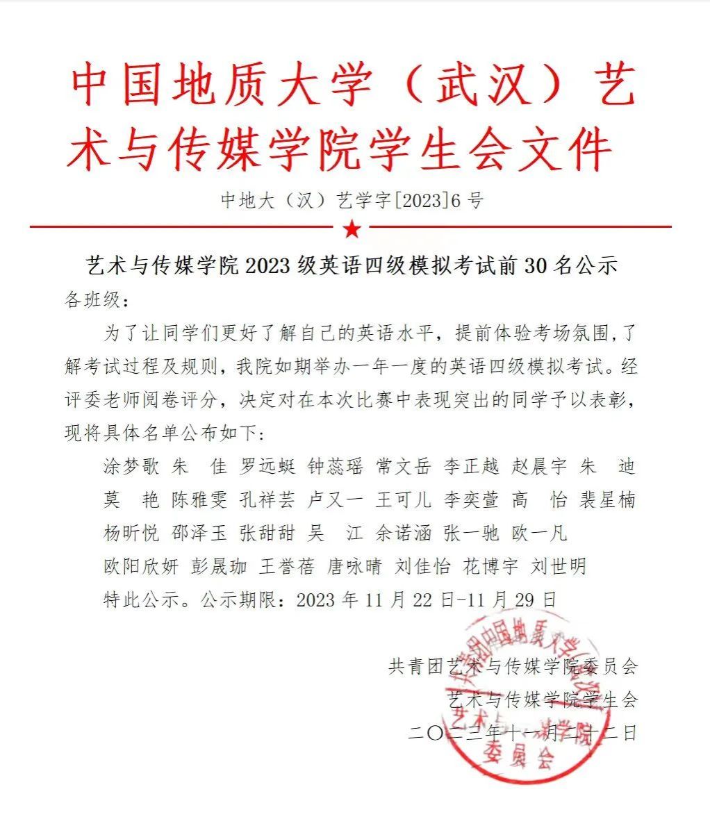 公示 | 米乐mile官方网站英语四级模拟考试前三十名公示