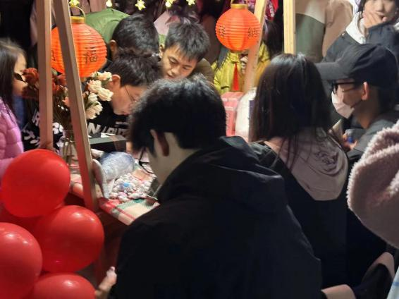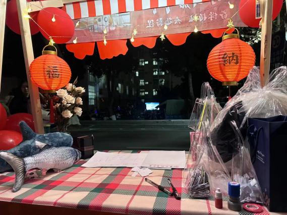 米乐mile官方网站的摊位更是门庭若市。进入游园嘉年华的首端“米乐mile官方网站”几个被红气球簇拥的艺术字体引人注目,两盏红灯笼挂在陈列着鲜花与奖品的桌板上,吸引着同学们的到来。一旁的游戏规则边,驻足着许多跃跃欲试的同学,期待着活动开始。