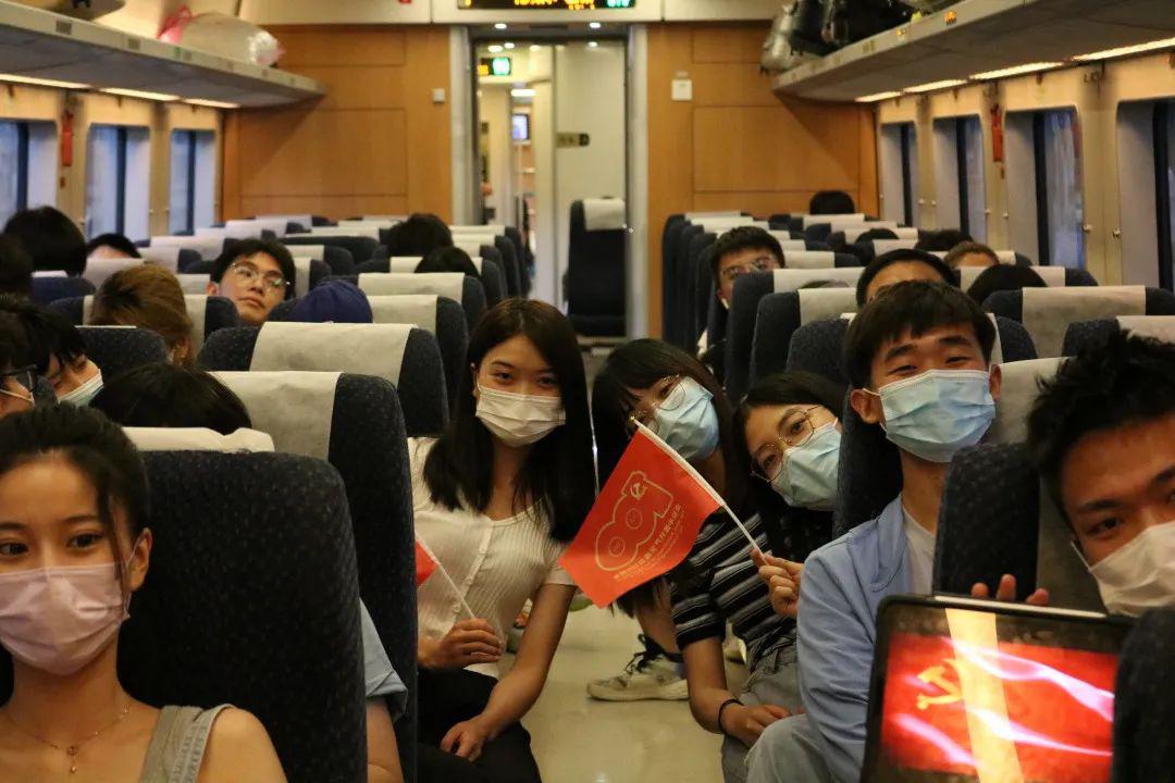 (通讯员 曾戈晖)7月1日上午,在中国共产党成立100周年的伟大时刻,米乐mile官方网站音乐系师生在前往暑期实习地点的列车上开展了“红歌献给党”快闪活动,副院长袁玥、音乐系副主任杨青带领着学院2019级音乐系48名学生把最美的歌声、最暖心的话语,最深情的祝福献给伟大的党,在党的百年华诞的重要时刻表达内心最诚挚的祝福和最深切的眷恋!