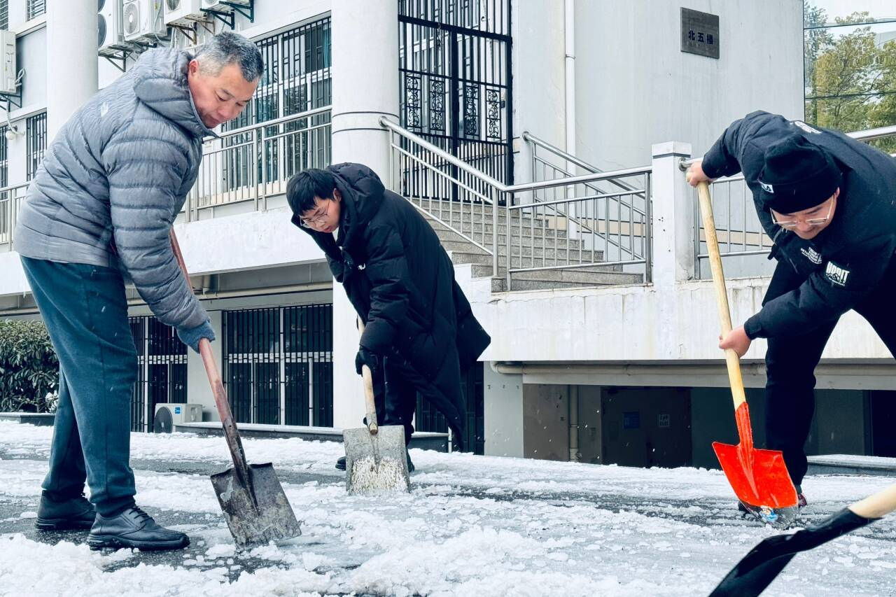 虽然天寒地冻,老师们却干劲十足,经过3小时的撒盐、挥锹、除冰、扫雪,一条可供人车通行的百米平安路、暖心路在北区综合楼至米乐mile官方网站楼前的道路上和中庭里显露出来……同志们的劳动身影成为冰天雪地里的一道亮丽风景,老师们的辛勤付出只为迎接同学们平安归来。