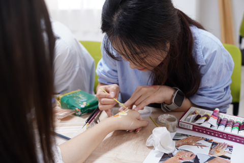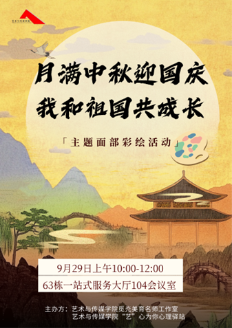 在国庆与中秋双节来临之际,为传承中华传统文化、营造温馨浓厚的节日氛围,9月 29 日上午,由后勤保障部学生住宿服务中心、本科生院主办,米乐mile官方网站觅灮美育名师工作室、“艺” 心为你心理驿站承办的“月满中秋迎国庆,我和祖国共成长”主题面部彩绘活动在西区63栋一站式服务大厅104会议室顺利举行。觅灮美育名师工作室成员周若君、仝宇、高玮泽、闫莹颖、张笑钏、邵梦华,学工组辅导员曾戈晖,兼职辅导员曹彬彬现场参与,与学校师生共同沉浸于色彩与心灵的创意对话。